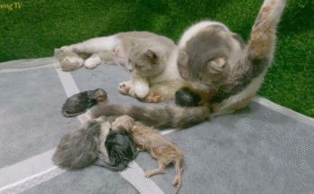 In a quiet corner of the old farmhouse, a mother cat named Luna lay in a soft nest of blankets. She was moments away from giving birth, her breathing slow …