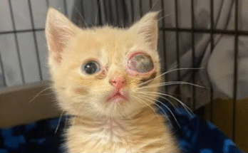 It was late afternoon when I first heard the soft, broken meow. I turned and saw a tiny kitten, frail and trembling, stumbling toward me. His eyes were clouded—blind. Yet, …