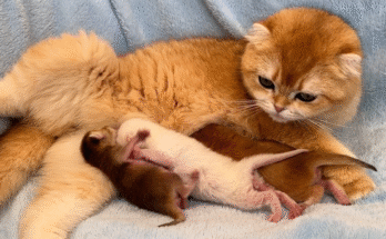 The sky had turned dark, and heavy rain poured relentlessly onto the earth. In the corner of an abandoned shed, a mother cat curled her fragile body around her newborn …