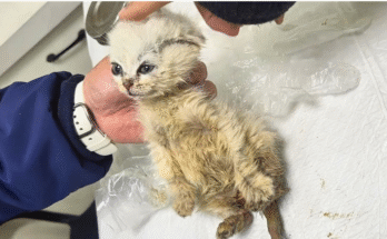 It was a cold, rainy afternoon when the tiny kitten was found—soaked to the bone, trembling, and barely breathing. Curled up beside a trash bin, its fragile body looked more …