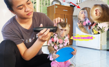 Monkey Lyly curiously checked in the mirror to see if her mother cut her hair nicely or not. Read More